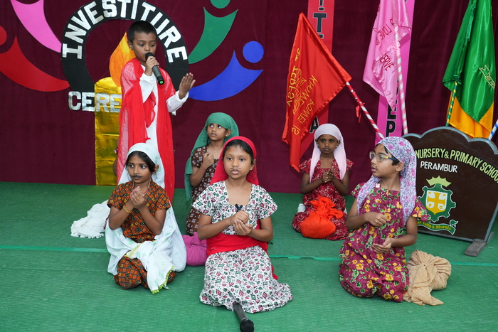 The school proudly conducted its investiture ceremony with great enthusiasm and reverence by honoring the new elected leaders of std III by pinning the badges and handing over the school house flag.